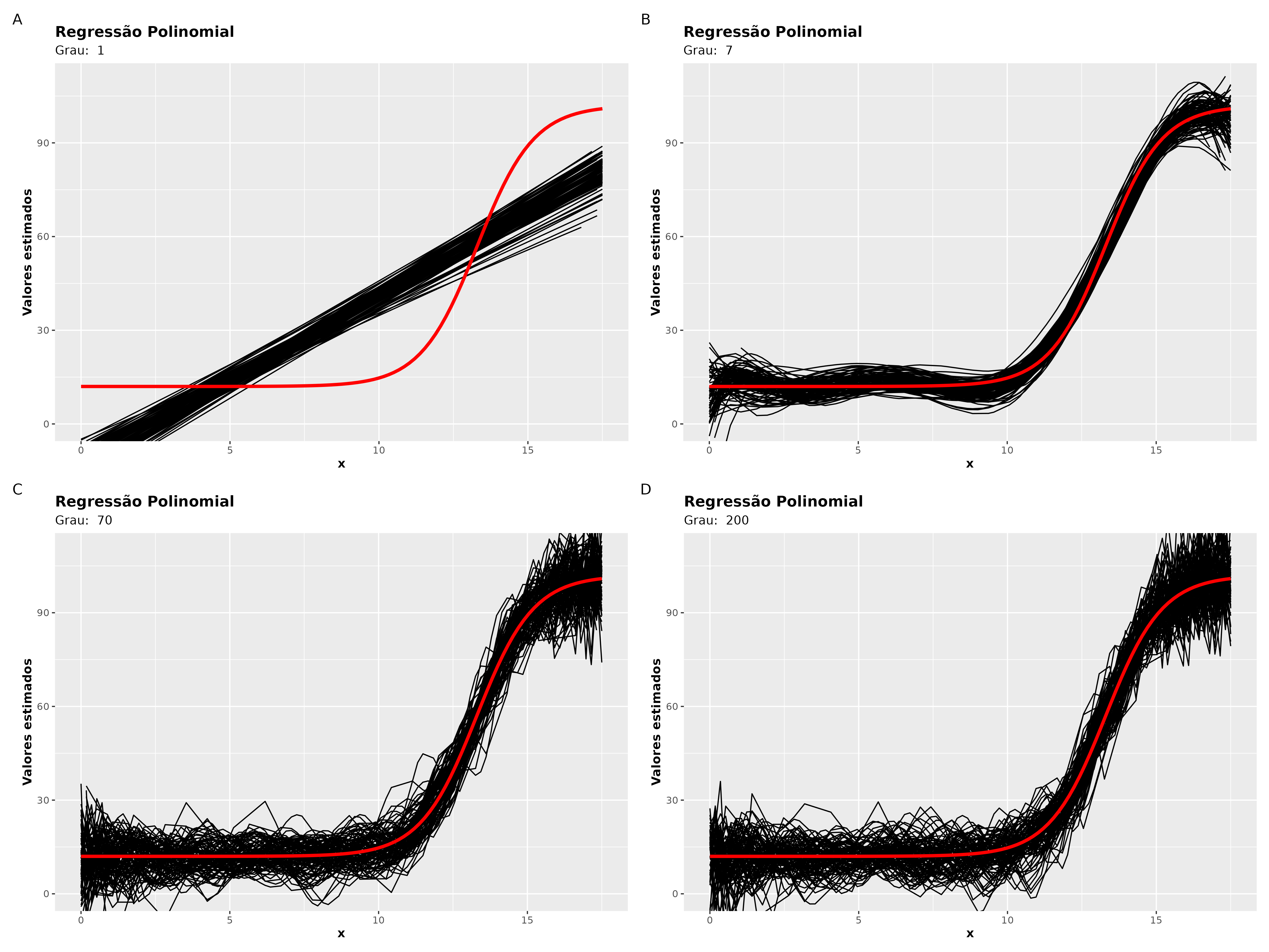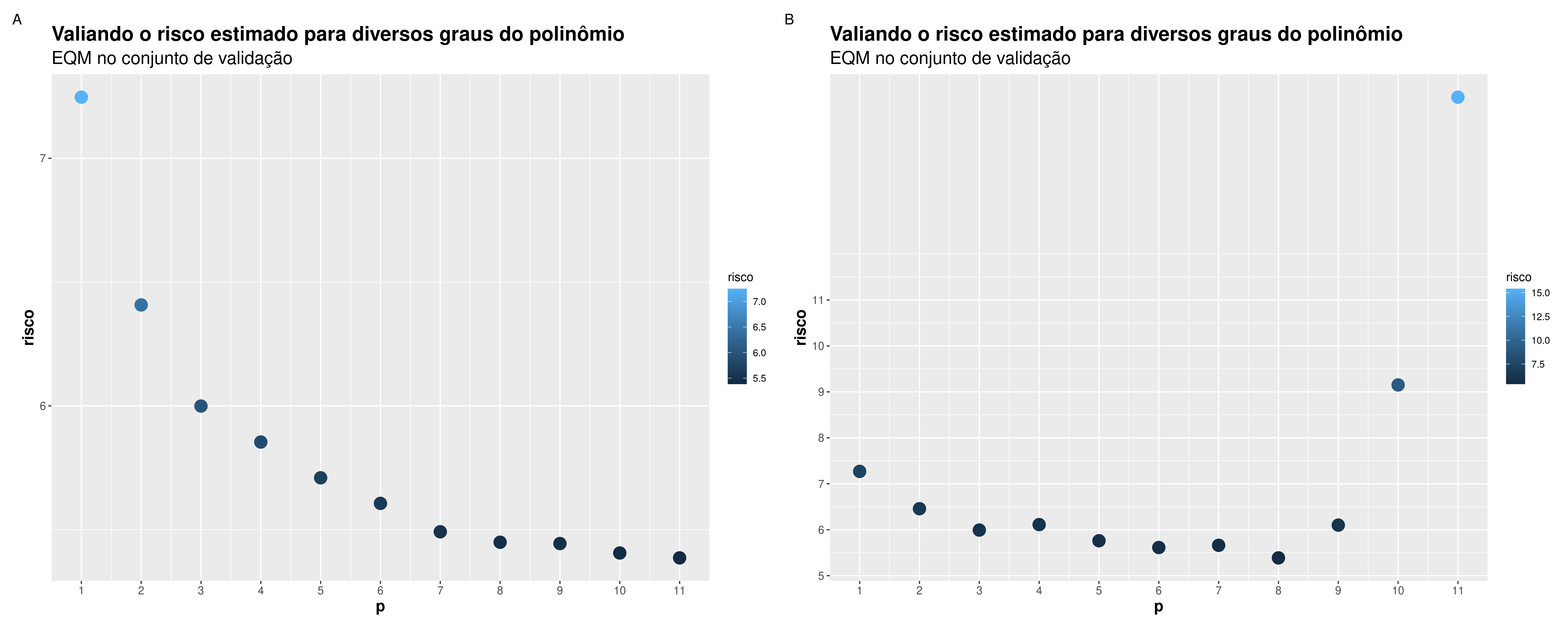 Exercício: Avalie a estabilidade de uma árvore de regressão usando um validação cruzada repetida. Construa um gráfico com os riscos observados na validação para um \sigma^2 fixo.