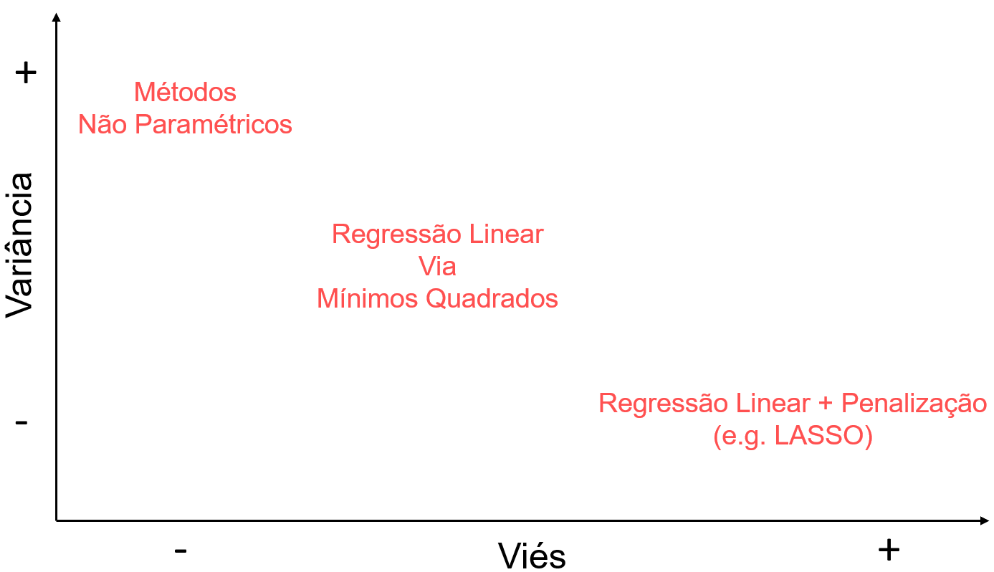 Generativos: são os métodos que dada as variáveis X e Y, o objetivo é encontrar a distribuição de probabilidade conjunta P(X, Y), para então poder determinar P(Y|X = \bf{x}). Alguns métodos são: